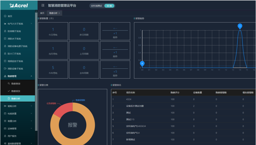 安科瑞智慧消防綜合管理雲平台基于物聯網、大數據、雲計算等現代信息技術,将分散的火災自動報警設備、電氣火災監控設備、智慧煙感探測器、智慧消防用水等設備連接形成網絡,并對這些設備的狀态進行智能化感知、識别、定位,實時動态采集消防信息,通過雲平台進行數據分析、挖掘和趨勢分析,幫助實現科學預警火災、網格化管理、落實多元責任監管等目标。填補了原先針對“九小場所”和危化品生産企業無法有效監控的空白,适應于所有公建和民建,實現了無人化值守智慧消防,實現智慧消防“自動化”、“智能化”、“系統化”、用電管理“精細化”的實際需求。